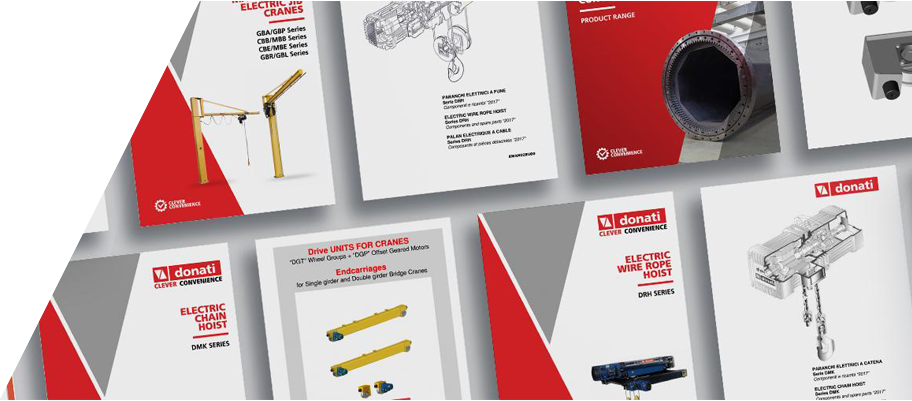 CATALOGS Brochures and user guides of electric chain hoist Sales Brochure and user guide of electric wire rope hoist Sales brochure and user guide of manual and electric jib cranes Sales brochure and user guide of endcarriages for bridge cranes Sales brochure and user guide of channel profile Sales brochure and user guide of crane set Sales brochure and user guide of kit for suspended monogirder bridge crane